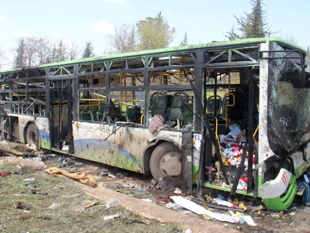 April 16, 2017 By Alison Tahmizian Meuse / NPR A picture taken April 16 shows the damage a day after a suicide car bombing attack in Rashidin, west of Aleppo, targeted buses carrying Syrians evacuated from Fuaa and Kafraya, two besieged Shiite villages. Omar Haj Kadour/AFP/Getty Images More than 100 people, including 68 children, were killed…